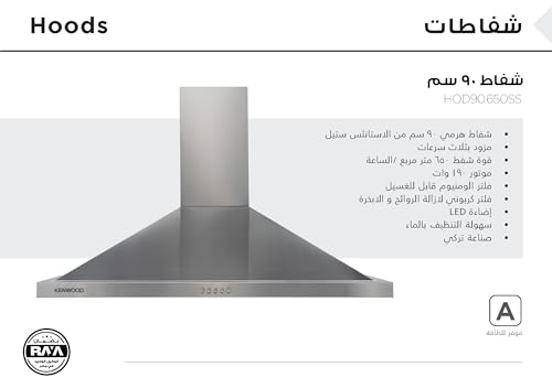 Kenwood - Kenwood HOD90.650SS 650 Cubic Meters/Hour Built-in Pyramid Hood, 90 cm Size