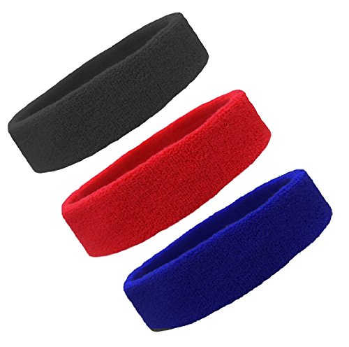 Kenz Laurenz - Kenz Laurenz Sweat Bands/Headbands for Women Men/Elastic Sports Sweatband Athletic Stretchy Band Workout Running Basketball Tennis Moisture Wicking Terry Cloth Set Keep Sweat Hair (bk red blu)