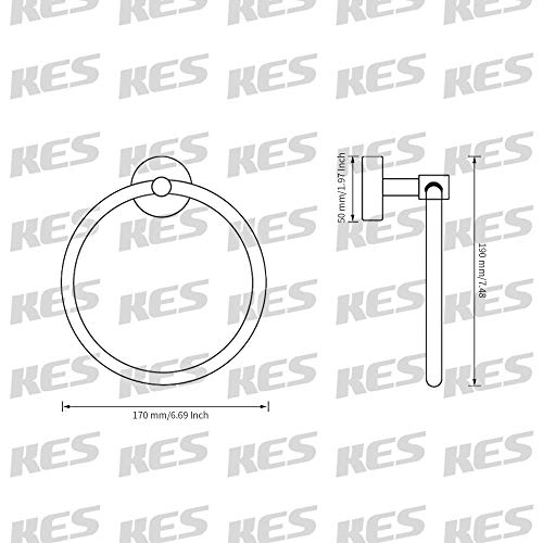KES - حلقة منشفة تعلق على الحائط من الفولاذ المقاوم للصدأ من كيس A2180 (فضي)