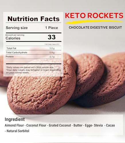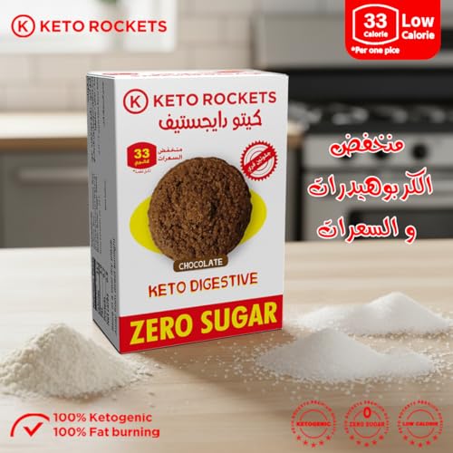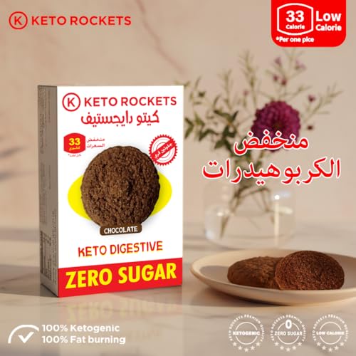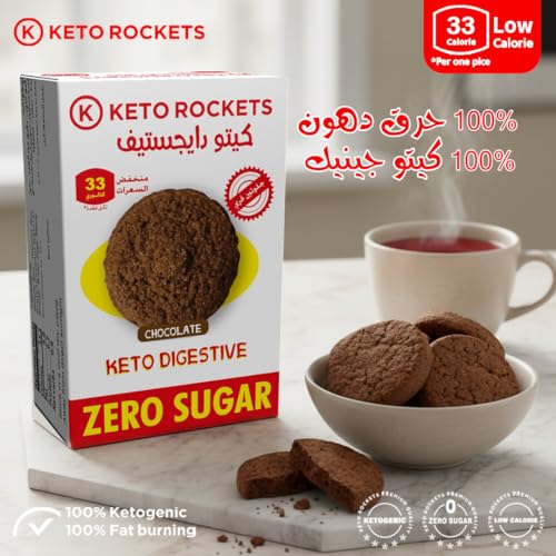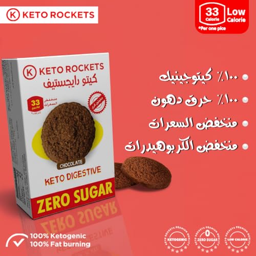 K KETO ROCKETS - كيه كيتو روكتس - بسكويت دايجستيف بالشوكولاتة من كيتو روكيتس - خالي من الغلوتين والسكر ووجبة خفيفة صحية منخفضة السعرات الحرارية. (2 × 1 قطعة)