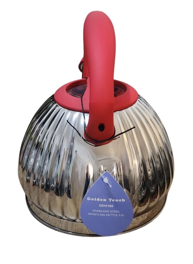 Happy Home - Kettle Tea pot with whistle capacity 3 liter Stainless Steel - Silver-Heavy Type 1KG Happy Home (Red, 3L)