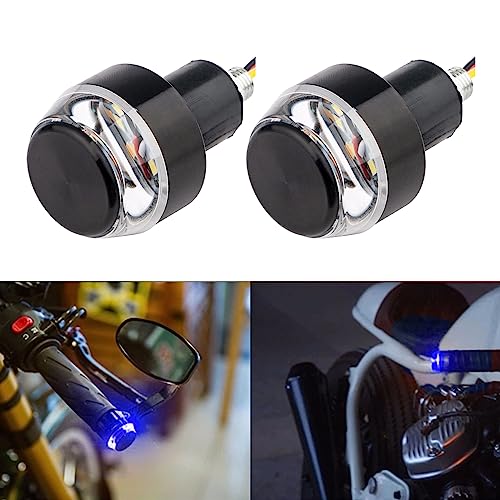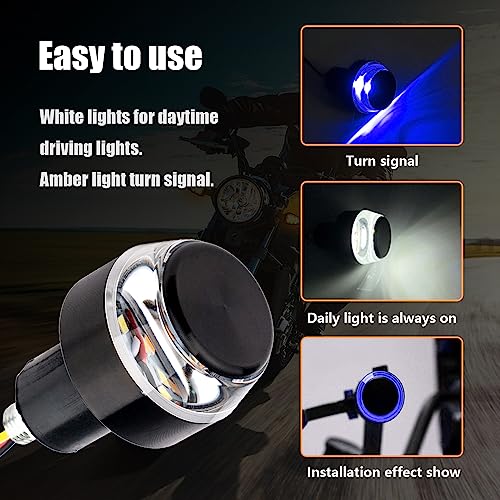 Kewucn - مصباح ليد دائري لمقود الموتوسيكلات مزدوج اللون لإشارة الانعطاف ومصابيح تشغيل من كيوكون، مؤشر جانبي 12 فولت ومؤشر اتجاه، ملحقات شاملة للموتوسيكلات، (أبيض إلى أزرق)، 2 قطعة