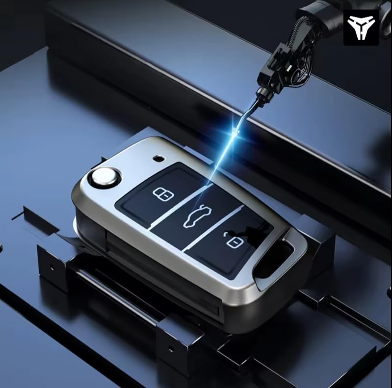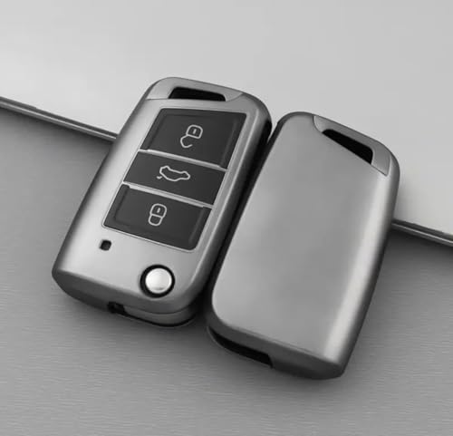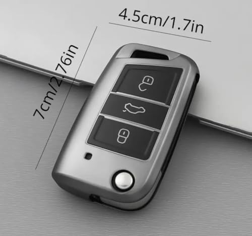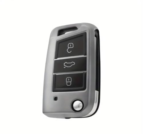 Generic - Key Fob Cover Compatible with Volkswagen Skoda - Chrome Plated Silicone Case for 4 Buttons - Stylish Key Protection - Select VW and Skoda Models (Silver)