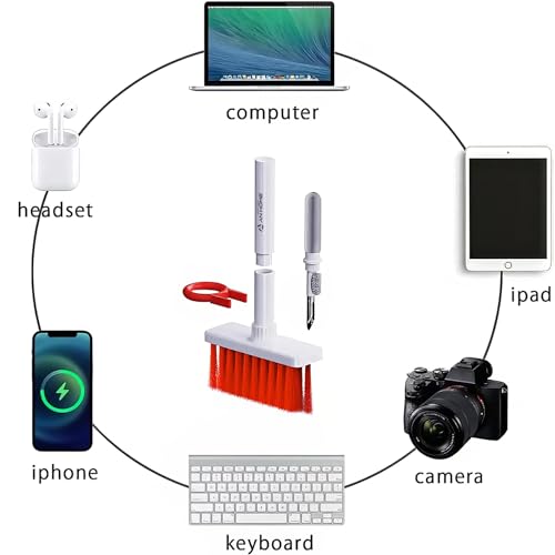 - [MULTI-FUNCTION] AnHome 5 in 1 Design portable computer keyboard cleaning kit bring you convenience, can effectively clean the inside of the grooves of the most sensitive electronic products (such as cleaning small crevices in mobile phones/charging cases/Bluetooth earphones/keyboards, computer screens, lenses, etc.) [New upgrade, stronger brush head]