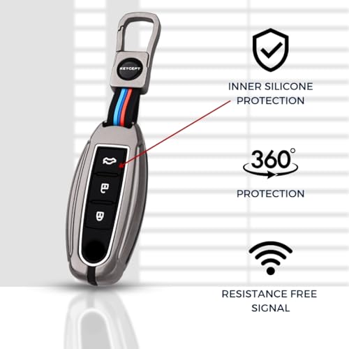 Keycept - Keycept? Metal Key Cover Compatible for Nissan Micra | Sunny | Kicks | Teana | Magnite 3 Buttons Smart Key.