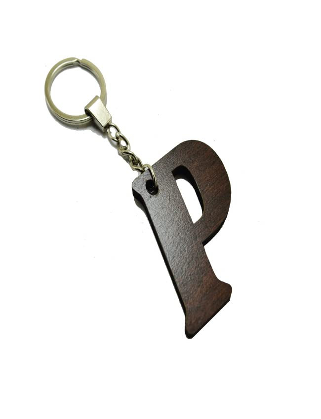 Generic - سلسلة مفاتيح للسيارة والمنزل والمكتب وغير ذلك بتصميم خشبي مقطوع بالليزر مع دلاية على شكل (حرف P) - من رنا ستور، بني