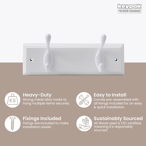 Keypak - OL910024 2-Hook Wall-Mounted Coat Rack, White