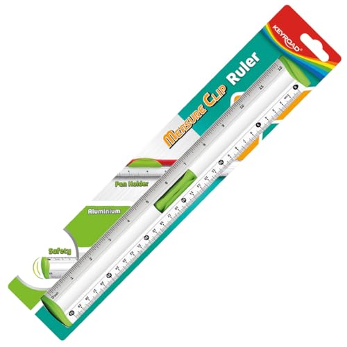 KEYROAD - Keyroad Measure Clip Aluminium Ruler with Pen Clip, 30 cm Length