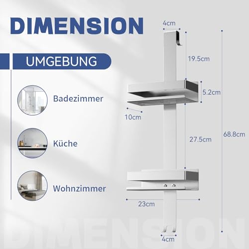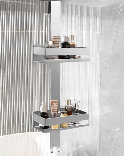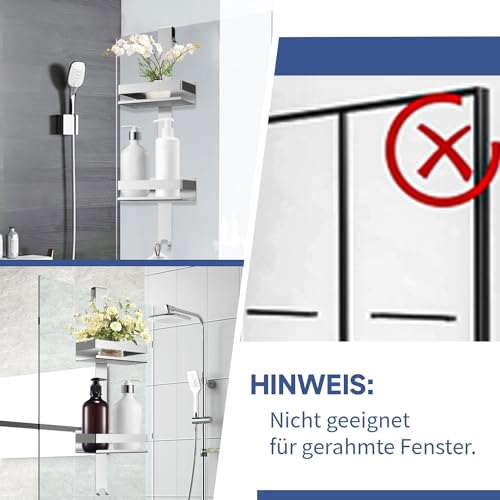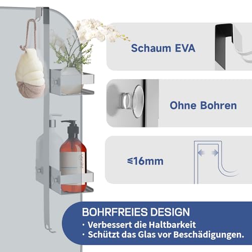 - تصميم عملي: يرجى التأكد من التوافق مع الأبواب الزجاجية بدون إطار حتى سمك 12 ملم عن طريق القياس قبل الطلب. تأتي علبة الدش مع وسادات واقية من مادة ايفا لمنع الاحتكاك بين الزجاج والسلة. يبلغ طول حامل الدش المعلق 66 سم ويوفر مساحة كافية لجل الاستحمام والصابون والشامبو وأكثر من ذلك مع سلتين (23 × 10 × 5 سم).