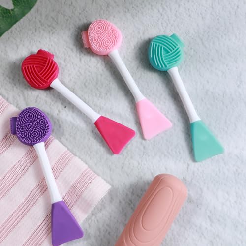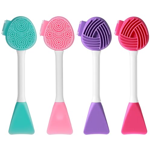 KFHENSOMR - 4 Pcs Silicone Face Scrubber Cleansing Brush Face Mask Brush Handheld Exfoliating Lip Cleansing Facial Wash Brushes Exfoliator Blackhead Double-Ended Skin Care Tool Skincare & Massage
