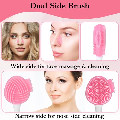 - 4-in-1 Silicone Face Brush - This versatile facial tool combines a silicone face brush, nose scrubber for blackheads, pore brush for face, and lip brush exfoliator in one compact design. The double-ended structure features soft silicone bristles for gentle exfoliation and deep pore cleansing without irritation.