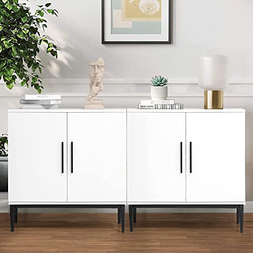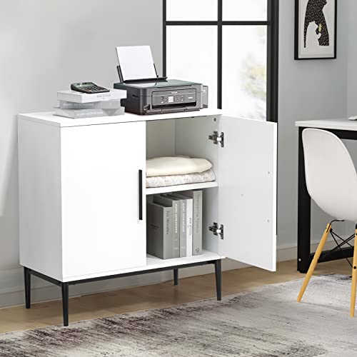KFO - KFO Storage Cabinet with Doors, White Accent Cabinet, Modern Free Standing Cabinet, Sideboard with Metal Base for Bedroom, Living Room, Kitchen and Office