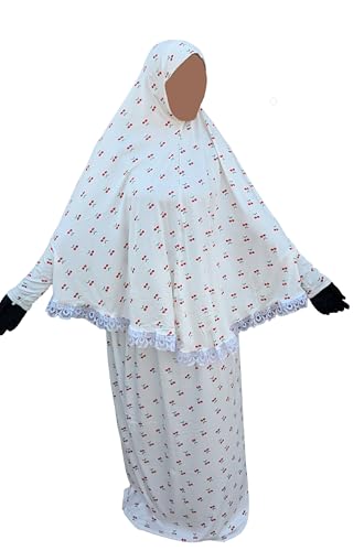 Generic - خمار صلاة للنساء، مصنوع من القطن والليكرا، متعدد الألوان، مقاس موحد، بتصميم تقليدي إسلامي مع تطريز دانتيل