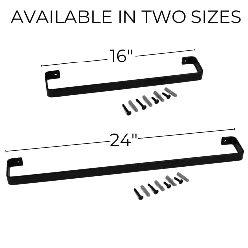 - 16” Length - Efficient Use Of Bathroom Space: Perfectly sized at 16x3x0.2”, the beautiful black towel rack easily fits towels, tea towels, clothes and more! With the wall mount towel bar you can use your available bathroom space smartly