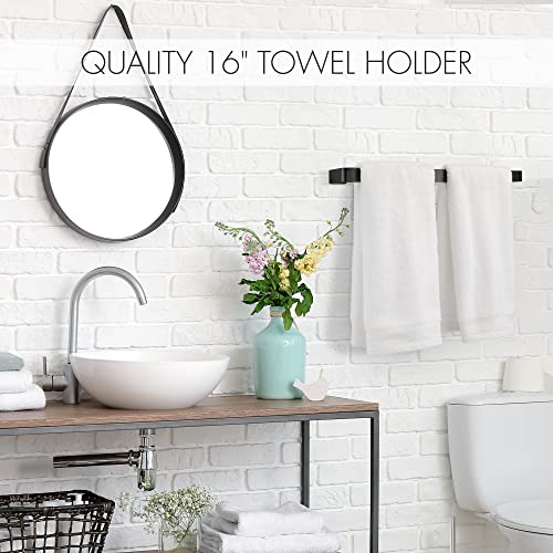 KIBAGA - KIBAGA Aesthetic Bathroom Towel Bar for Wall Mount – Space Saving and Easy to Install 16" Towel Holder Rack - Stylish Minimal Rod to Enhance Your Modern/Farmhouse Bathroom Decor - Black