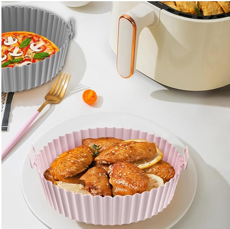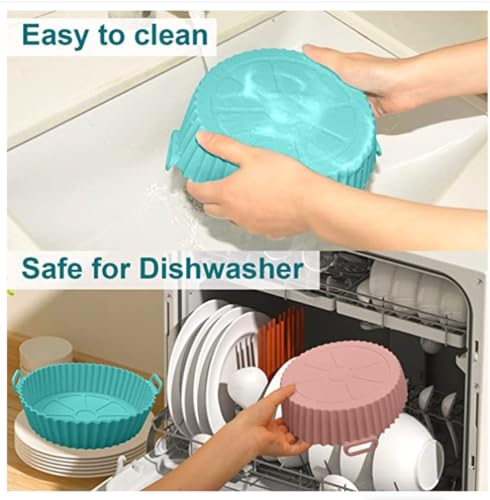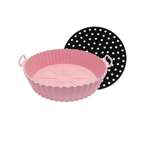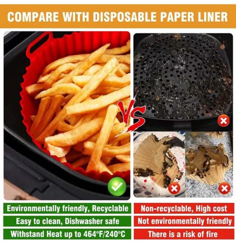 - [Easy to Clean & Dishwasher Safe] - The silicone air fryer liners pot and mat keeps your air fryer clean and enjoy delicious foods without burn and sticky. Dishwasher Safe, avoiding the trouble of hand washing. Large size: 8 inch.