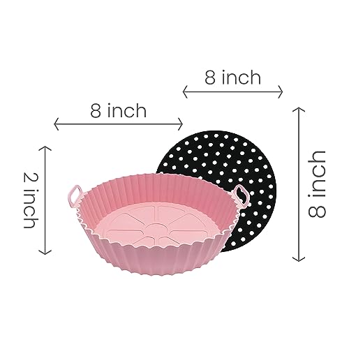KIBODE - Air Fryer Silicone Liner, 8 INCH, 2 pack, Reusable Air Fryer Liner (2, Pink/Black)