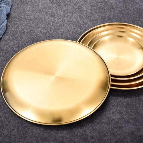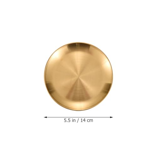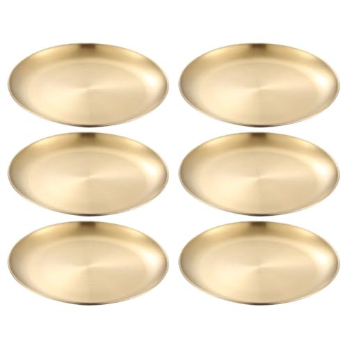 Kichvoe - اطباق ذهبية من الستانلس ستيل 6 قطع كيتشفو عشاء معدنية مستديرة على الطراز الكوري لتقديم شرائح اللحم والمقبلات والمعكرونة طبق تشاركوتيري للمنزل والمطعم 14 سم صواني كيك دائرية
