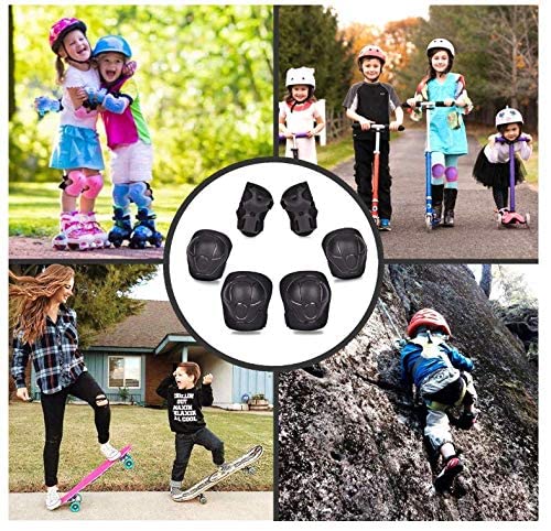 Generic - وسادات ركبة ومرفق للاطفال - عبوة من 6 قطع، اسود