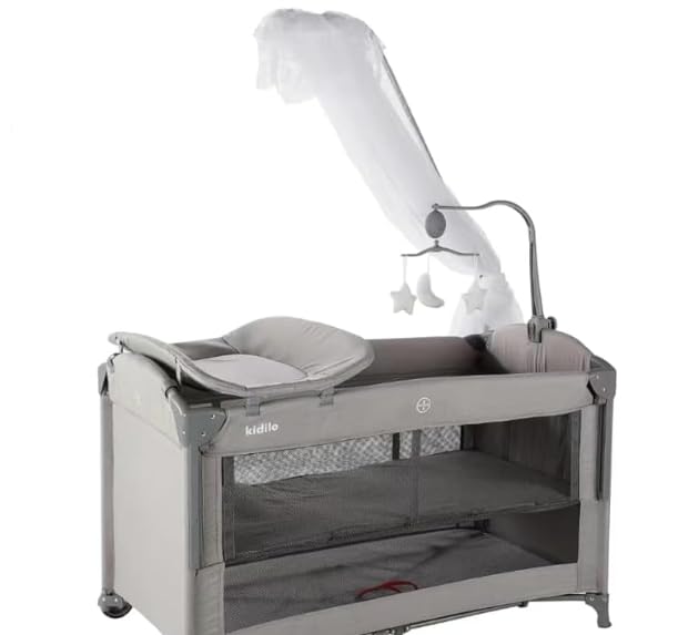 Generic - سرير اطفال من كيديلو موديل T702L - سرير اطفال محمول بارتفاع قابل للتعديل وجوانب شبكية (فضي)