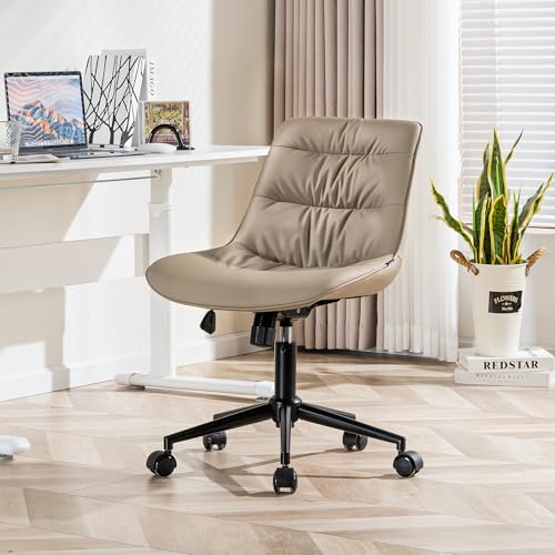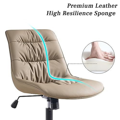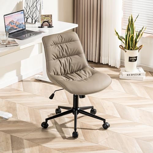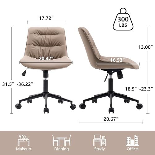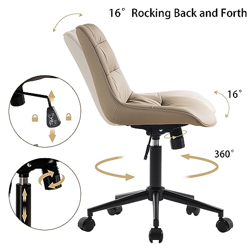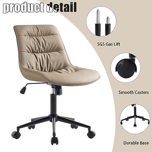 Kidol & Shellder - Kidol & Shellder Ergonomic Office Chair Wheels Swivel Armless Desk Chair Faux Leather Upholstered Vanity Reading Chair Reclining Chair with Adjustable Mid Back Wide Seat Living Room Khaki, 1945-2KH
