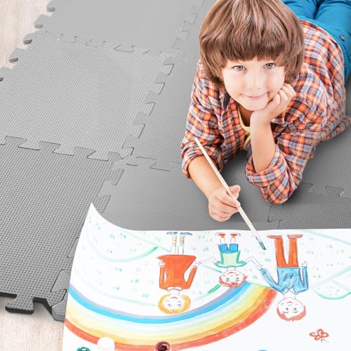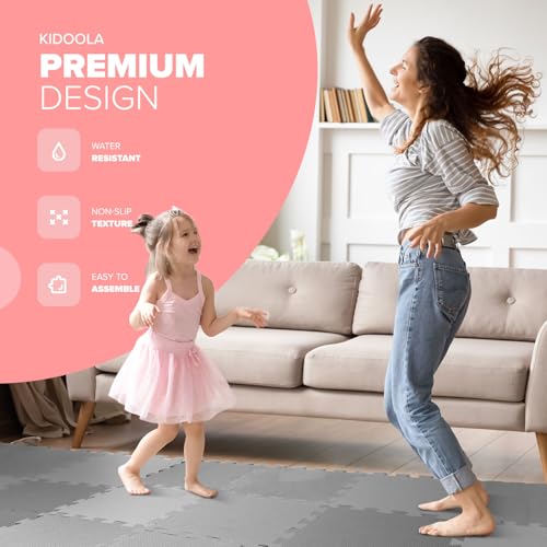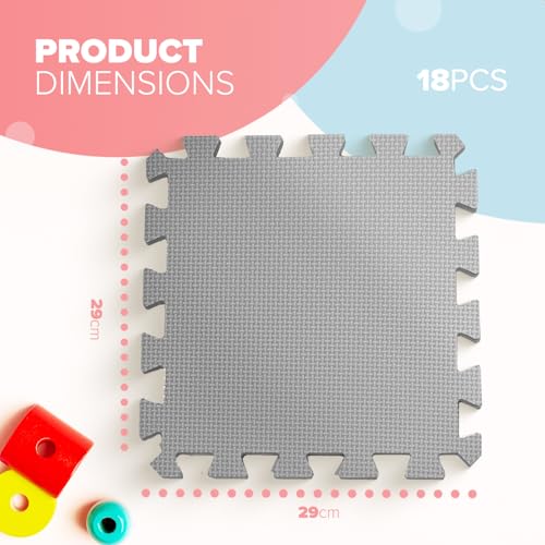 kidoola - kidoola Foam Baby Play Mat (29x29cm) – Thick & Soft EVA Foam Interlocking Floor Tile Matting for Children – Safe & Comfortable 7mm Thick Play Flooring (18pc) -Grey