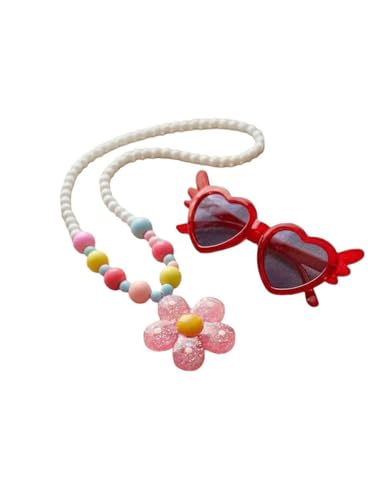 Generic - مجموعة إكسسوارات أطفال،للعيد والمناسبات سلسله ونظاره للبنات عقد خرز بزهرة ونظارة شمسية على شكل قلب، بلاستيك، متعدد الألوان