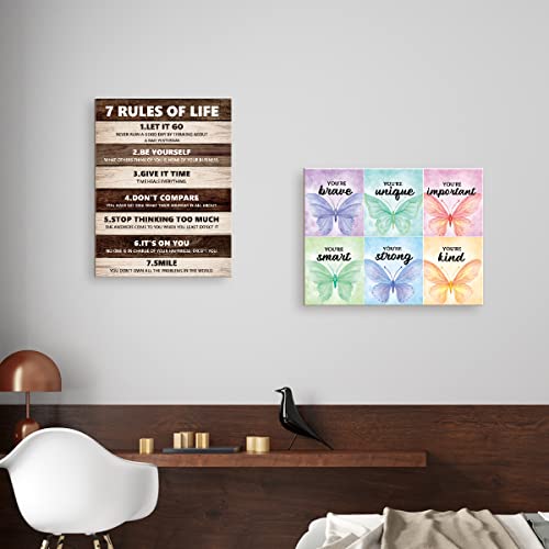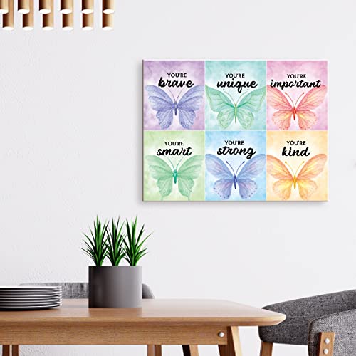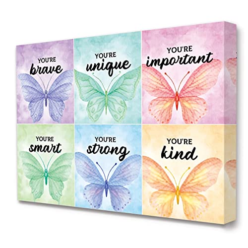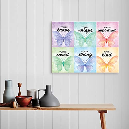 LISTNGBO - Kids Affirmation Colorful Butterfly Canvas Wall Art,You Are Brave Inspirational Quote Canvas Framed Wall Artwork Ready to Hang for Kids Teens Girls Nursery Home Bedroom Wall Decor 12 x 15 Inches