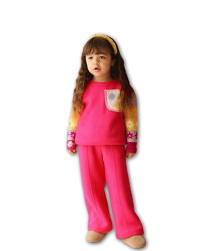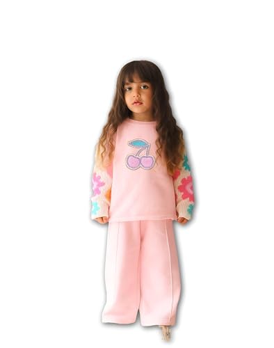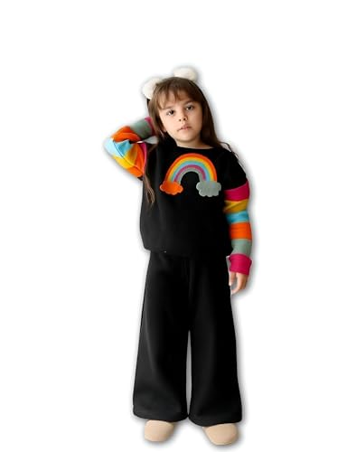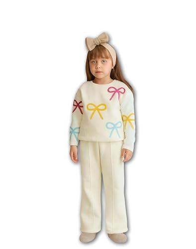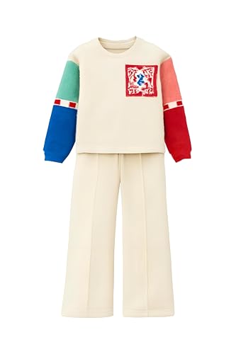 Generic - Kids Apparel - Cream Sweatshirt with Colorblock Sleeves and Wide-Leg Pants, Sizes 6-12, Trendy and Soft Set for Comfortable Playtime and Casual Events