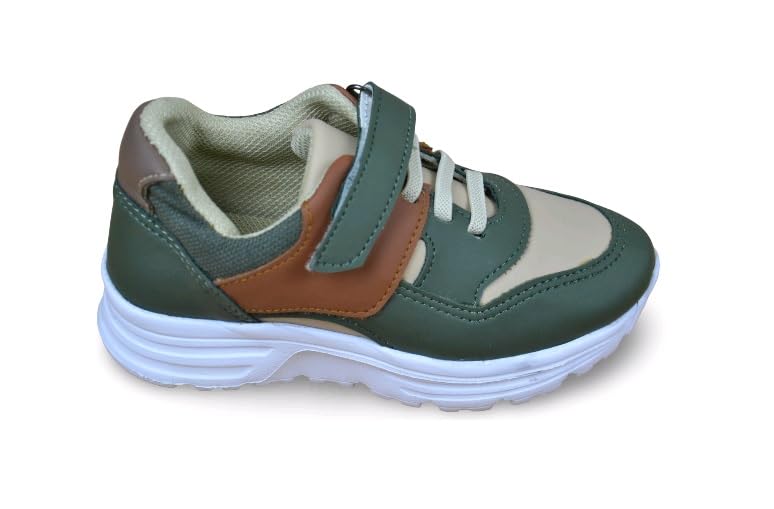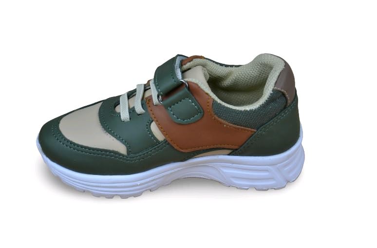 Generic - حذاء رياضي للاطفال، اسود مع لمسات صفراء نيون، اغلاق حلقي، نعل ابيض 9018