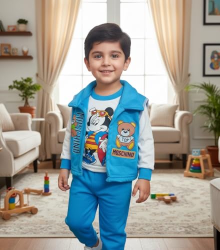 Generic - بيجاما خريفي للأطفال، بدلة 3 قطع طباعة كرتونية مبهجة و الوان متعددة ، بنطلون و تيشيرت وسترة كاجوال. عمرسنة