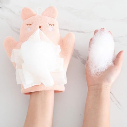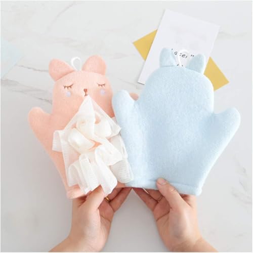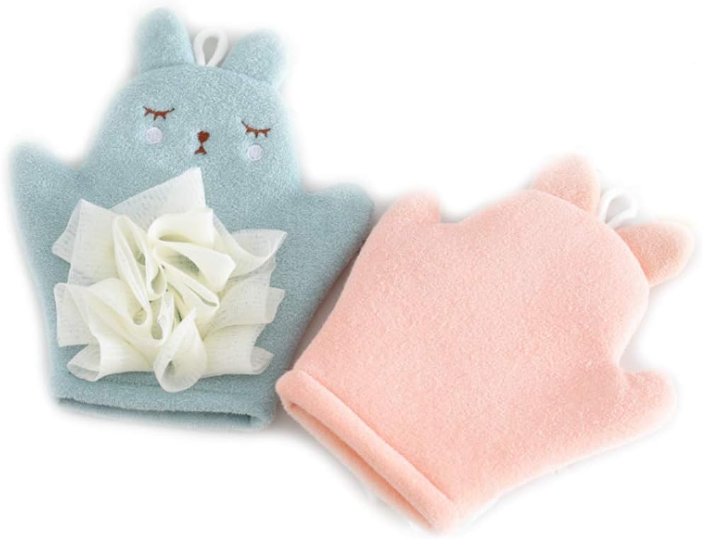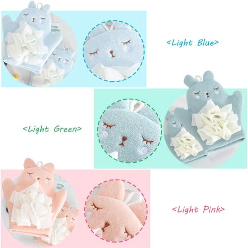 - ADORABLE DESIGN: Charming animal-shaped bath mitts in soft pastel colours of pink, blue, and mint green, featuring cute embroidered sleeping faces and decorative bows