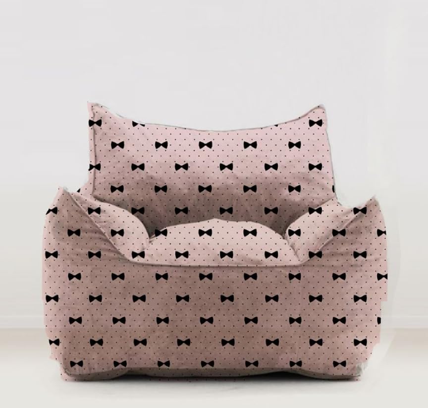 Generic - كرسي بين باج للأطفال بنمط فيونكة، منقط باللونين الوردي والأسود ومقعد مبطن ناعم، 68 سم، وردي/أسود