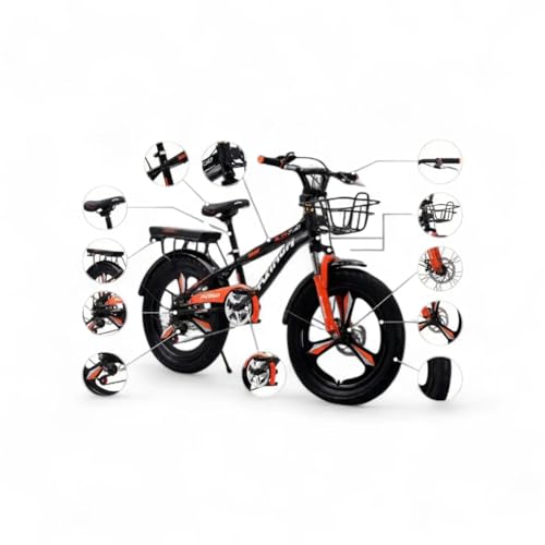Generic - Kids Bicycle with Front Basket, Black and Orange, Disc Brake, Training Wheels, Rear Rack