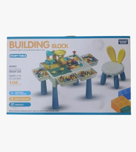 Generic - طاولة مكعبات للأطفال مع كرسي، 108 قطعة، مع مكعبات بناء كبيرة، للأطفال من عمر ٣ سنوات