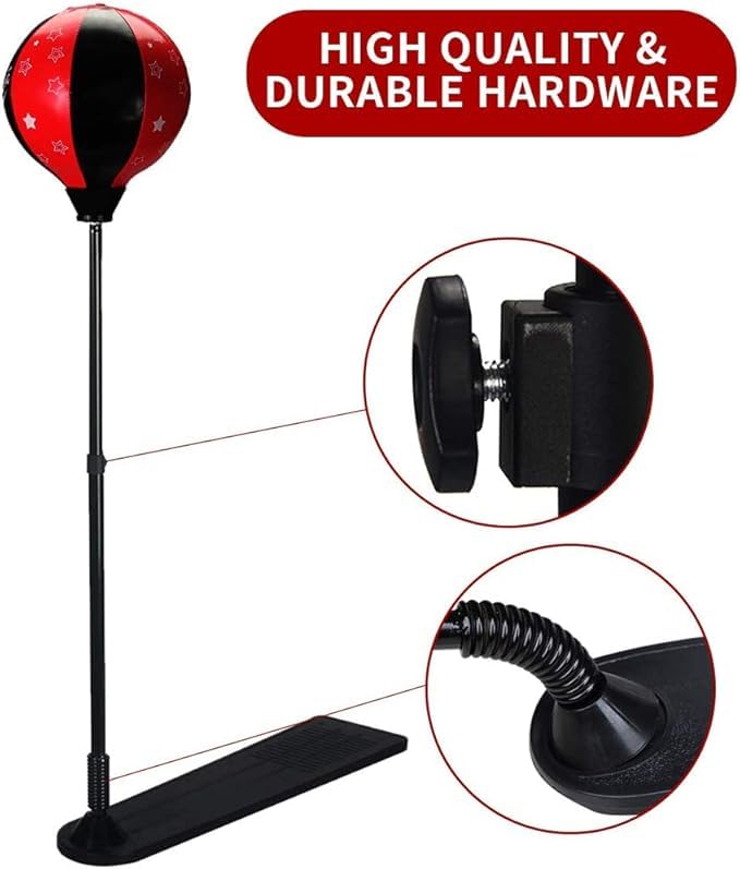 - ADJUSTABLE Telescopic Stand: Designed to be extremely flexible, the boxing bag can be raised or lowered to fit baby's height, making it a long-term investment that grows with your child from early childhood to larger stages.