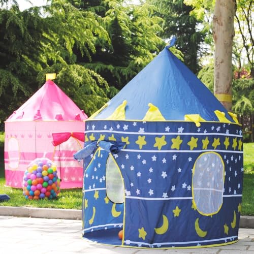 Generic - خيمه أطفال على شكل قلعة، خيمة لعب زرقاء مع نجوم وأقمار، منزلية للأطفال