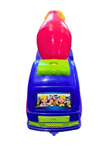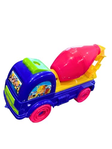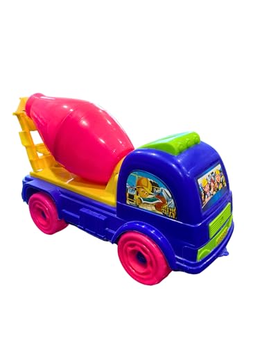 - COLOURFUL DESIGN: Vibrant blue truck body with pink wheels and yellow mixer drum, creating an eye-catching and engaging toy