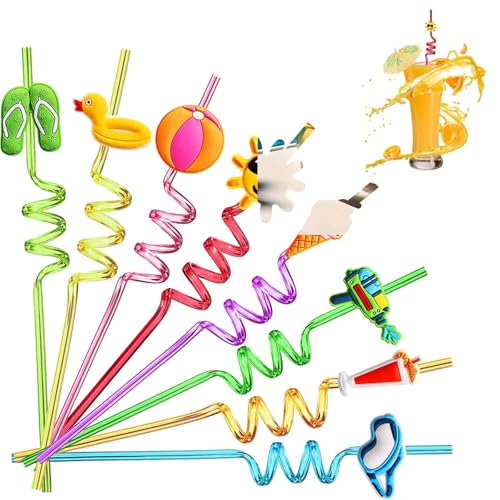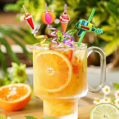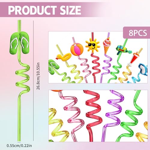 GGUFAY - Kids Drinking Straws Reusable Drinking Straws for Kids Birthday Colorful Ice Cream Fruit Party Plastic Drinking Straws Accessories 8pcs