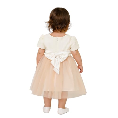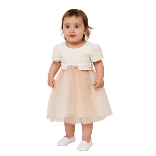 Generic - فستان حفلات فاخر للأطفال، تصميم كلاسيكي، أبيض مع تول وحزام مزين بالكريستال، مقاسات 3-36 شهر