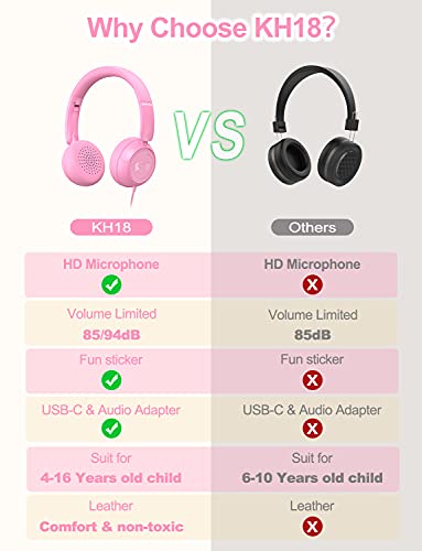 - [ BUILT in HD MICROPHONE ] New bee KH18 kids headphone built in HD microphone which provide crystal clear communication for your 4-16 years old children during the learning or playing games.