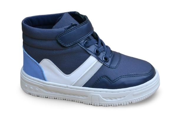 Generic - حذاء رياضي كاجوال قماش برقبة عالية مع حزام لاصق للأطفال الأولاد، أبيض موديل 803