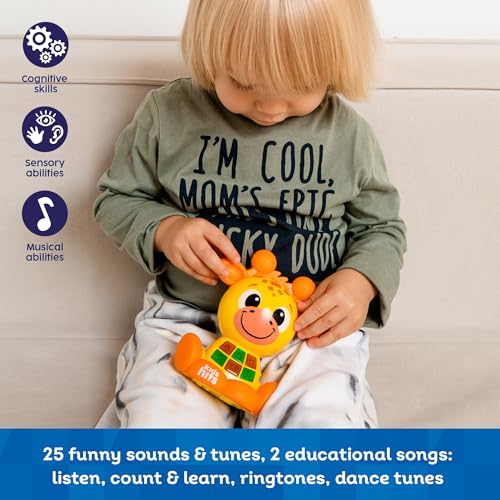 - 25 funny sounds and melodies 2 educational songs Play along with amusing sounds! The ears click when moving! Textured elements Light-up buttons!