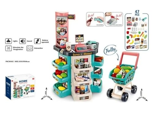 Generic - لعبة مطبخ للأطفال، مجموعة سوبر ماركت منزلية تظاهرية مكونة من 47 قطعة، مجموعة مطبخ سوبر ماركت ألعاب للبنات والأولاد