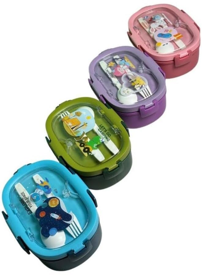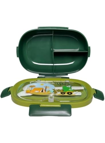 generic - صندوق غداء للاطفال - منظم 3 اقسام + ادوات (ملعقة وشوكة) مثالي للمدرسة والفصول الدراسية والنادي وأنشطة الاطفال