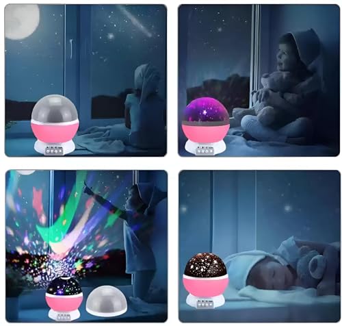 Daga - مصباح ليلي للأطفال لتعزيز وقت النوم مع جهاز عرض نجوم ليد ملون وقابل للتعديل مصمم لتهدئة الأطفال وتحفيز الخيال في أي غرفة (بينك)