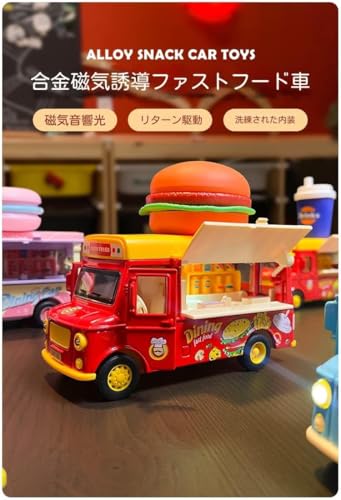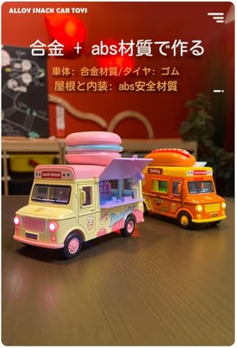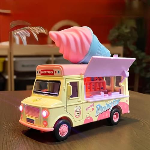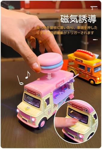 YMX - لعبة عربة آيس كريم وهامبرغر ومطبخ للوجبات السريعة مع موسيقى للأطفال، نموذج عربة مصنوع من خليط معدني قابل للسحب للخلف (سيارة آيس كريم بلون وردي)
