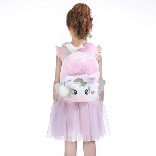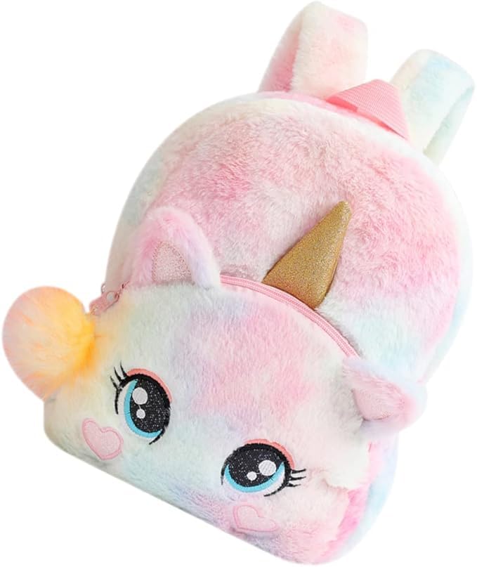 Generic - Kids Plush Backpack, Cartoon Multicolor Soft Fur with Golden Horn and Glitter Eyes, for Eid and School