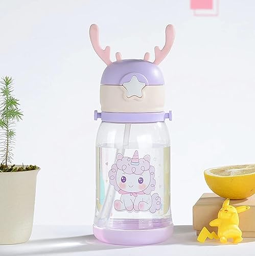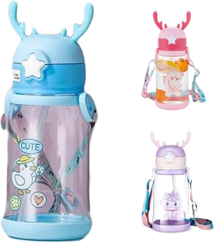 Generic - Kids Portable Water Bottle with Straw, Antler Design, Large Capacity, Multicolor