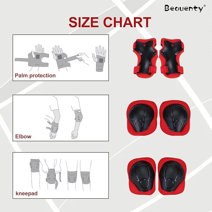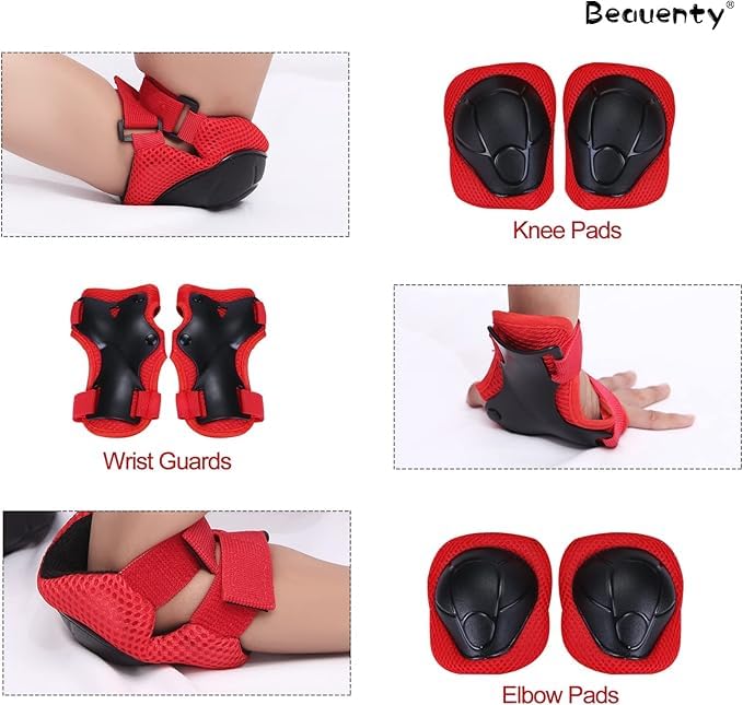 - مجموعة حماية كاملة: مجموعة معدات واقية مكونة من 6 قطع تتضمن وسادتين للركبة ووسادتين للكوع و2 واقي معصم لتوفير حماية شاملة للأطفال أثناء التزلج وركوب الدراجات والأنشطة الخارجية الأخرى